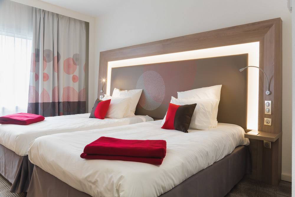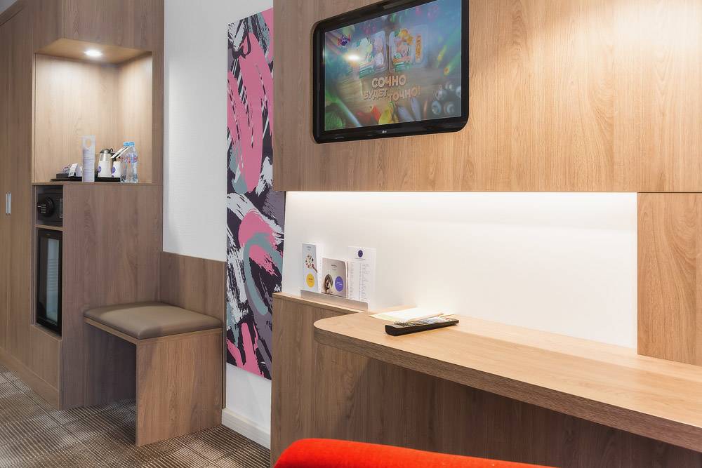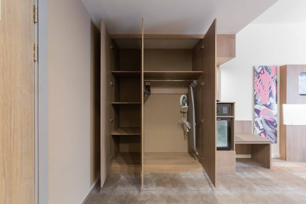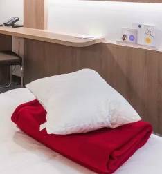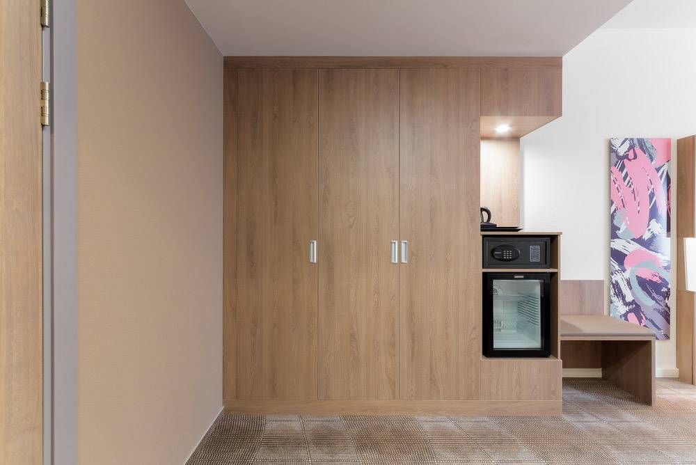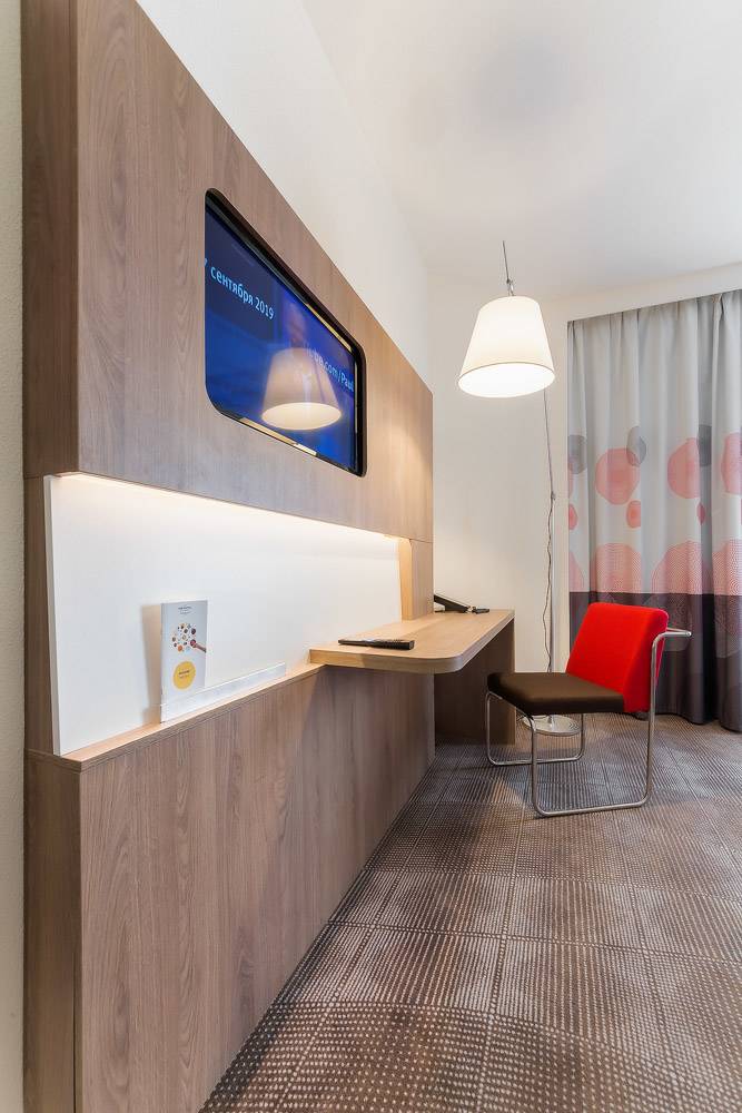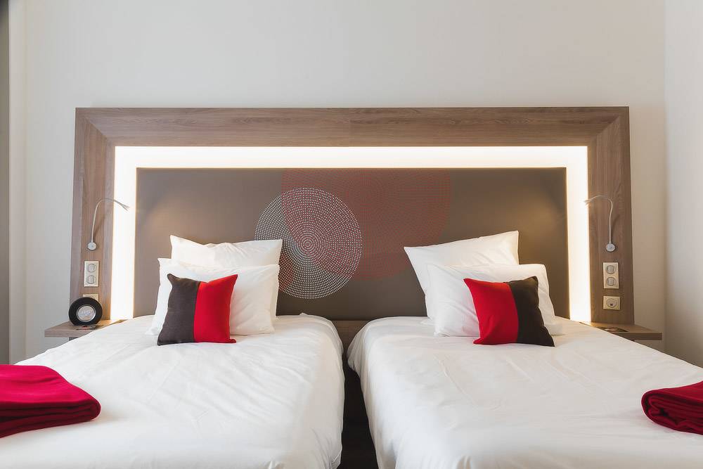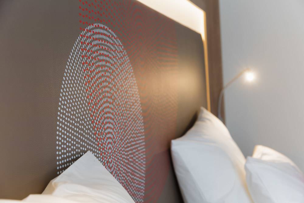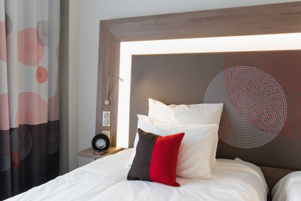 с розетками и подстветкой, встроенными в изголовье кровати.