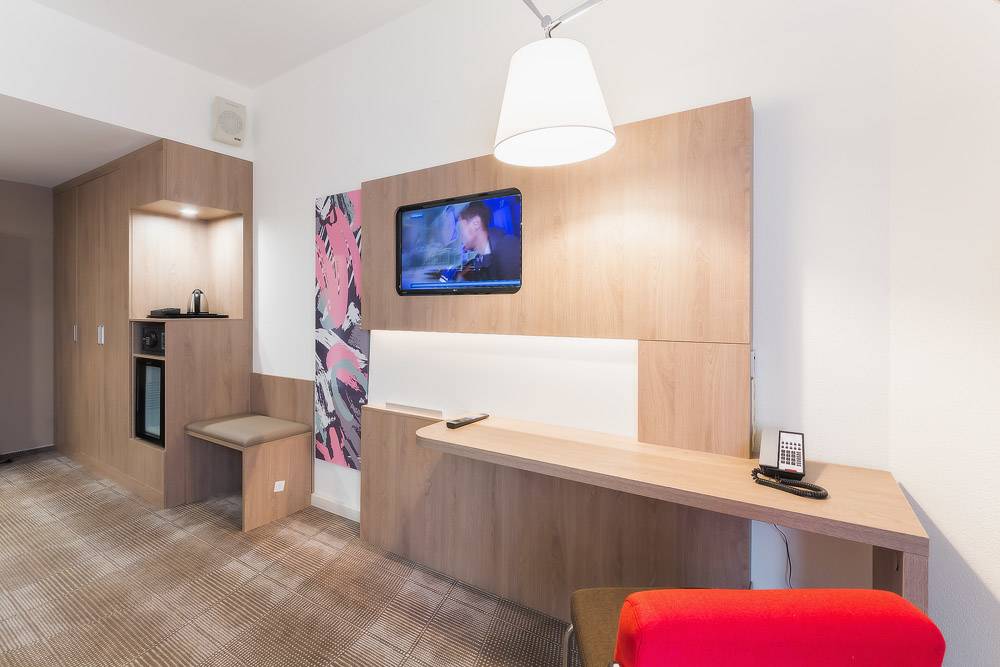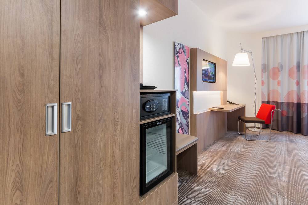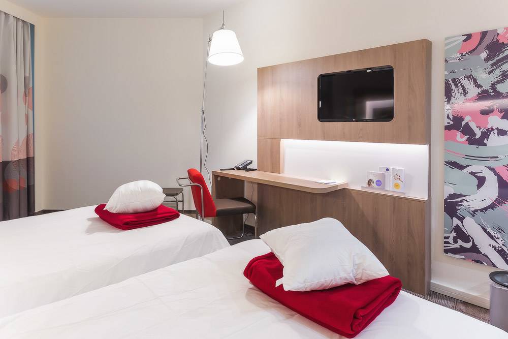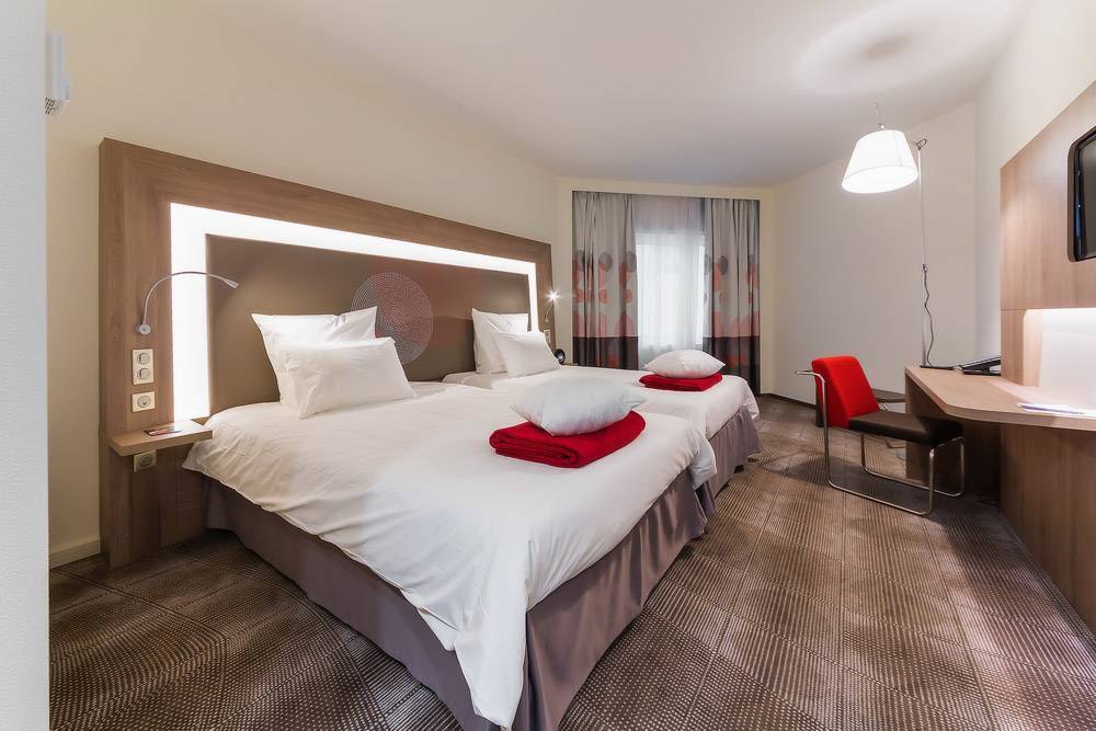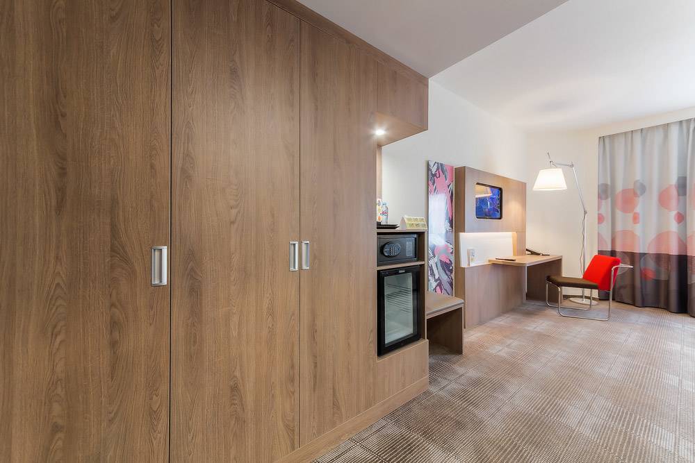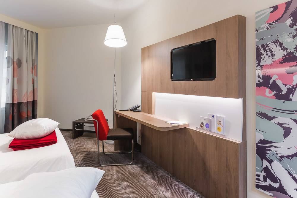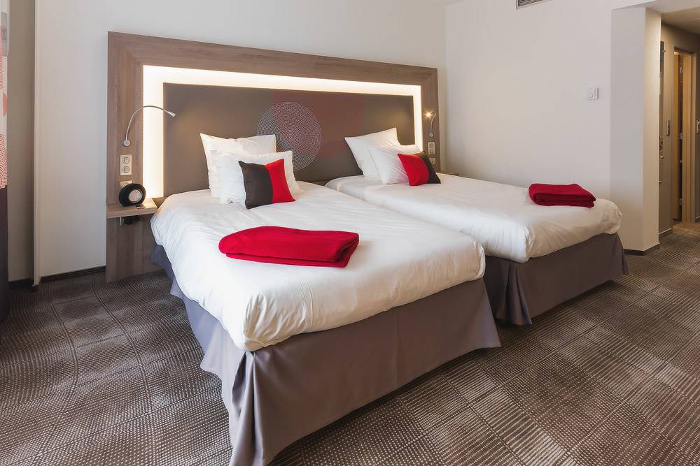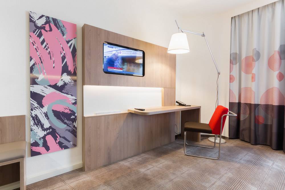 с розетками и подстветкой, встроенными в изголовье кровати.