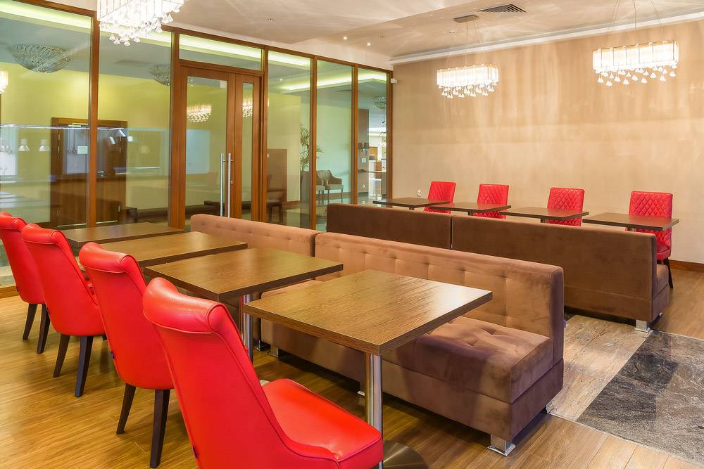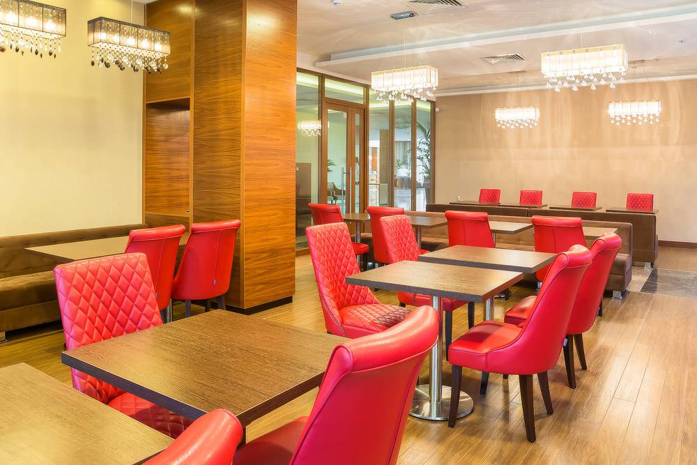 Столы, стулья и мягкая мебель для зоны ресторана.