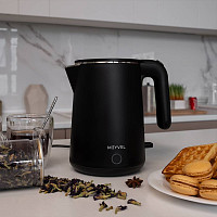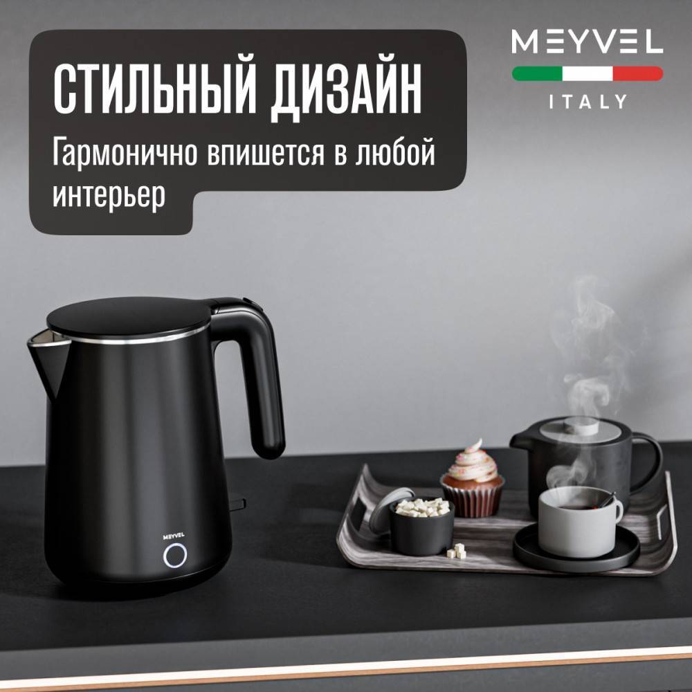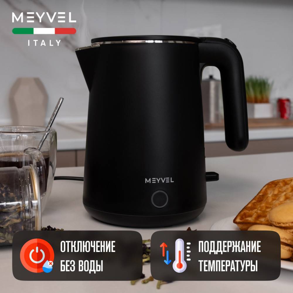 Объем 0,8 л, автоматическое отключение без воды, корпус пластик, уровень шума 60 дб, мощность 1360Вт, поддержание температуры